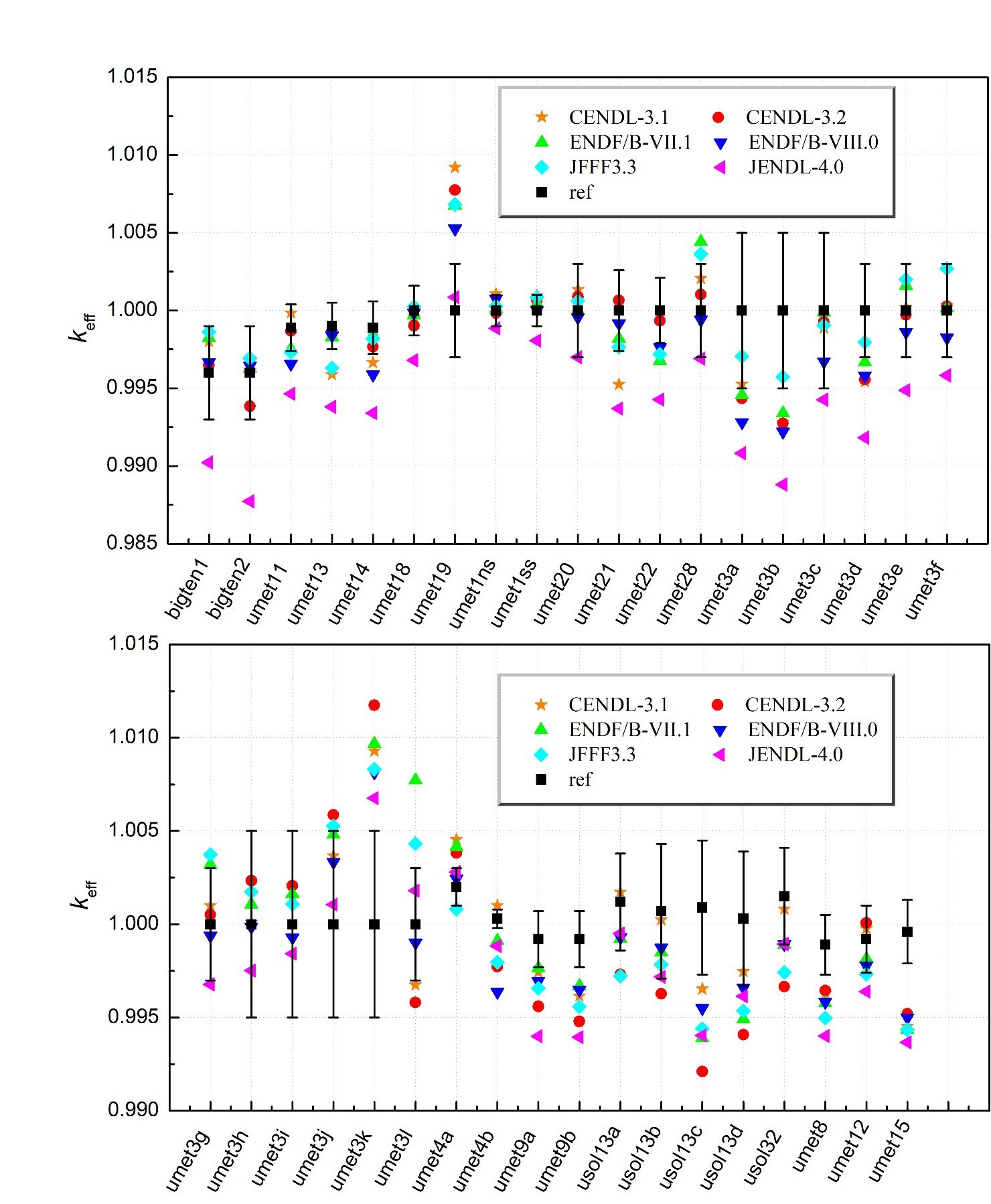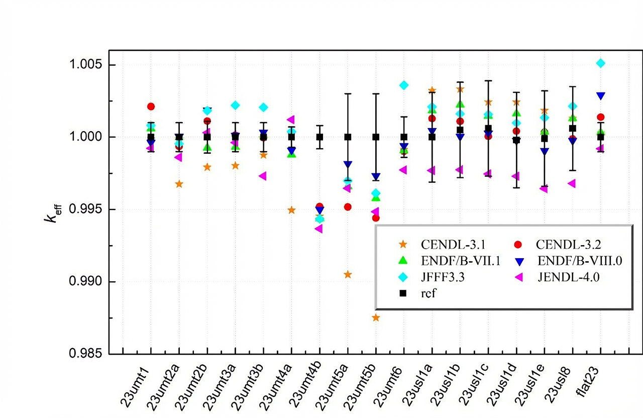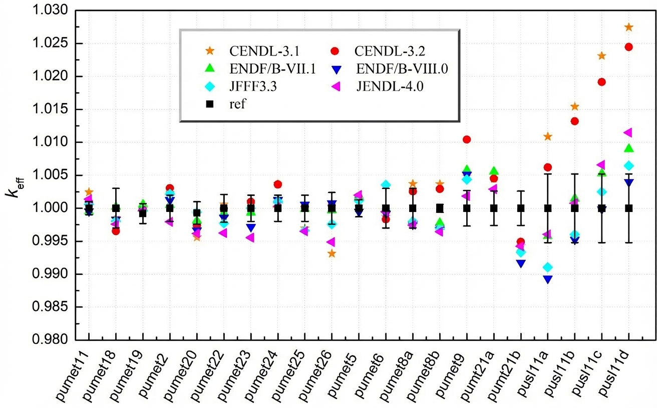 From a nuclear data perspective, because benchmarks involve many nuclides, qualitative analysis cannot determine which nuclides have greater impact on . The commonly used method is to identify important reaction channels of key nuclides through sensitivity and uncertainty analyses. This work has not yet been completed and will be further studied in our future work.